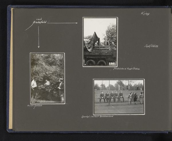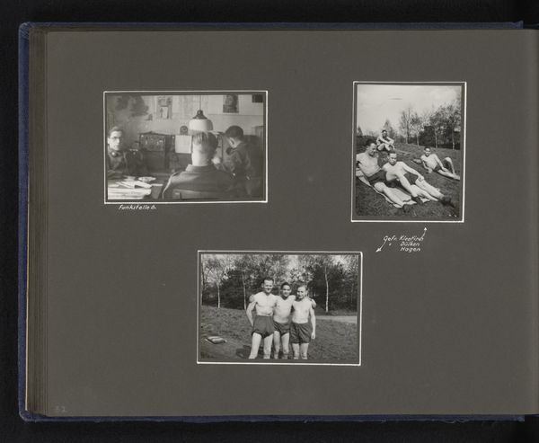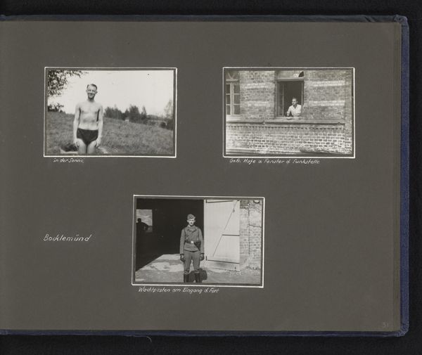 This is 'Opleiding in Bocklemünd', a photograph of a training camp by an anonymous artist. It’s the casual arrangement of the three pictures that grabs me: two shirtless men on a park bench; a group of people playing football, and a lone figure kicking a ball across a field. The tonal range is narrow, and each composition is equally weighted, presented without hierarchy. There’s a rawness, a stripped-down aesthetic, much like the work of Lisette Model, or the deadpan photography of Bernd and Hilla Becher, and it presents an unvarnished portrayal of everyday life during wartime. The slightly out-of-focus quality adds to the effect, creating a sense of immediacy. I feel like I’m eavesdropping on something personal, a hidden story. And it’s this ambiguity, this refusal to be pinned down, that keeps me coming back.