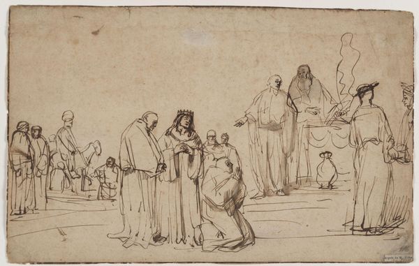 Hans Burgkmair created this pen and brown ink drawing, "The Circumcision," sometime between the late 15th and early 16th centuries. Burgkmair was working during a period of great religious and social upheaval, and the Reformation would have had a profound effect on artists as the role of religious art was hotly debated. Here, Burgkmair depicts the circumcision of Jesus, an event laden with cultural and religious meaning. In Jewish tradition, circumcision is a rite of passage, symbolizing identity and belonging. This work exists within a longer history of religious and political negotiations between Christian and Jewish identities, and it reflects the complex power dynamics that shaped religious practices and artistic representations. Consider how Burgkmair's own identity and beliefs might have influenced his portrayal of this intimate and culturally charged ceremony. It is interesting to consider how the artist uses his composition to highlight and even question societal issues related to faith, tradition, and belonging.
