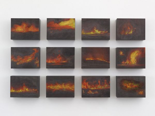 Editor: So this is Olafur Eliasson's "The island series" from 1997, and it appears to be a collection of photographs. Looking at them all together, the repetition gives it a real minimalist feel, almost like a scientific study. What is your take on this piece? Curator: I see this work as very much connected to the socio-political context of environmental awareness that was burgeoning in the late 90s. Eliasson, known for his engagement with natural phenomena, presents us with islands – isolated entities surrounded by water. The grid-like presentation mimics scientific cataloging, prompting us to consider our relationship with the environment, but also how we observe and classify it. Consider the role of institutions like museums in framing our understanding of nature. Editor: So, you're saying that it is not just about appreciating the beauty of the landscapes? Curator: Precisely. It challenges the notion of landscape as purely aesthetic. How does the act of photographing and framing these scenes change our relationship with them? Are we preserving, consuming, or something in between? Moreover, think about Iceland’s role within globalization during that period and its fragile ecosystem: this work perhaps becomes a quiet comment about larger forces reshaping these seemingly untouched lands. Do you think the serial imagery and uniform framing flatten these environmental issues in some ways? Editor: That’s a great point, I see what you mean. I originally focused on the aesthetics but now understand its commentary on institutional influence and globalization. It gives a much richer understanding of the artist's practice and underlying motivations. Curator: Absolutely. Seeing beyond the immediately visual unveils the artist’s socio-political engagement with our planet and its representation. A single island image is aesthetically pleasing. The power emerges in its collective display and challenges viewers to observe more profoundly.