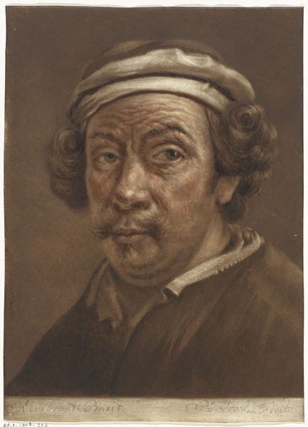 Editor: Here we have a drawing titled "Portret van Rembrandt van Rijn," made sometime between 1743 and 1800. It looks like charcoal on paper. I’m immediately drawn to the gaze – intense, unflinching. What do you see in this piece? Curator: It’s fascinating to consider this through a contemporary lens of identity and self-representation, especially regarding the male gaze and its power dynamics. We assume it is a self-portrait and question what a male artist’s intention may be, what narrative is he imposing on himself? The very act of a prominent white male artist capturing his own image reflects a certain privilege, doesn’t it? How does this echo through art history, with marginalized artists often excluded from such representation? Editor: That’s a compelling point. The self-portrait as an act of claiming space. How would you relate it to, say, contemporary portraiture? Curator: Contemporary artists of color are consciously reclaiming that space, challenging the historical dominance of white male artists and offering diverse perspectives on identity and representation. What historical and societal issues could intersect with Rembrandt's choice to paint himself, considering, say, Dutch colonialism? Editor: So, the idea of Rembrandt painting himself is not just a neutral act, but something inherently tied to power and the social fabric of his time. It becomes an active assertion. Curator: Exactly. By examining his art through an intersectional lens, we see that his “genius” was developed in a societal ecosystem structured by colonial and class power dynamics, something rarely explicitly acknowledged when praising artists of that era. Editor: I hadn't considered how those historical power structures affect our interpretations today. Thank you for broadening my perspective. Curator: And thank you. It’s through such dialogue that we can disrupt established narratives and create space for more inclusive and critical perspectives in art history.