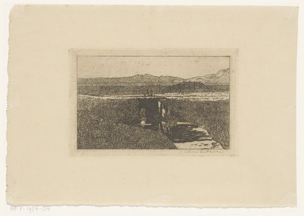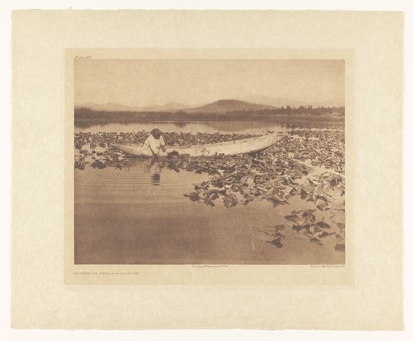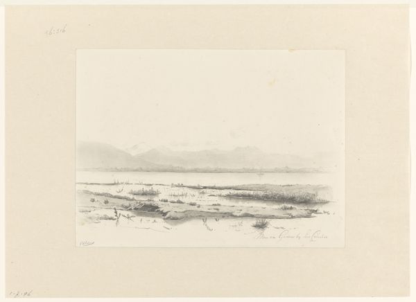 Ernest Benecke created this photograph, "Landschap in Nubië," likely in the mid-19th century. The sepia tones lend the landscape a timeless, almost dreamlike quality. Mountains rise gently in the background, their forms echoed in the still water that dominates the foreground. Benecke's composition invites us to consider the formal interplay between nature and representation. The photograph operates as a sign, a semiotic marker, that both reflects and constructs our understanding of the natural world. What is represented as the sublime, is a question of framing and perspective rather than a true representation of reality. The way Benecke captures light and shadow further emphasizes the constructed nature of the image. It suggests a way of seeing shaped by aesthetic conventions and cultural values. This photograph is not just a landscape; it is an exploration of how we perceive and give meaning to the world around us.
