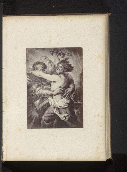 Editor: This is a photographic reproduction of "Philosophical Than One Thinks" by Antoine Wiertz, and it's dated before 1868. It has an ethereal, almost dreamlike quality to it. What underlying stories or cultural memories do you see surfacing in this piece? Curator: This gelatin-silver print certainly captures the dramatic flair inherent in Romanticism. Consider the allegorical figures, the dramatic lighting. Do you see any echoes of classical mythology? Editor: Yes, there's a figure that appears Cupid-like, hovering over what looks like nude statues. The photographic print itself creates a distance from the original painting. Curator: Exactly! It's filtered through a lens, not only physically, but also conceptually. Photography here serves as a method of preservation but simultaneously transforms the original into something new. How does that transformation affect our reading of the piece? The statues invoke the memory of classical beauty, the Cupid points toward an immortal realm... Where do our mortal limits exist in the Romantic pursuit of boundless creativity? Editor: I think the change in medium creates a sense of…removed introspection, almost like looking at a memory. Are the figures arranged to be read like symbols in some sort of romantic drama? Curator: Wiertz masterfully imbued this with symbols characteristic of history paintings! Does the photograph help translate, dilute, or amplify these cultural signals and emotional weights for us now? The answer could reside in our capacity for interpretation... Editor: This has made me realize how much the meaning shifts with each artistic interpretation! Thanks for your insights. Curator: A constant dialogue with history... We both learned something from this!