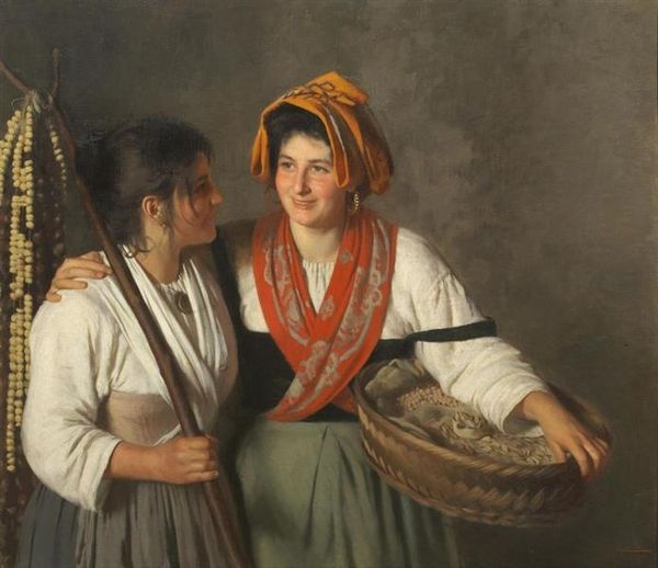 Isidore Pils captured this scene of "Two North Africans Conversing" using oil on canvas, a glimpse into a culture both familiar and foreign to his European audience. Notice the fez each man wears, a symbol of identity and belonging. The fez echoes through art history, resonating with the head coverings of religious figures or the elaborate headdresses of ancient rulers. It is a marker of status, a signifier of cultural pride. The act of sharing a drink also carries deep symbolic weight. From ancient libations to modern toasts, the shared cup signifies communion and shared experience, creating a bond of trust and camaraderie. We see these motifs repeated through history, adapting to different contexts, yet always retaining a sense of connection, reminding us of our shared humanity. The painting prompts a dialogue across time, engaging viewers on a deeply subconscious level.