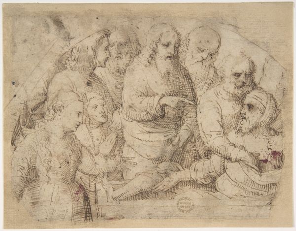 Adriaen van Ostade rendered "Sketches of Peasants Playing Dice and Skating; Sketch of Boy on Sled" in a reddish-brown medium, likely chalk or sanguine. The composition is a dynamic arrangement of figures engaged in various activities, capturing moments of leisure and camaraderie. Ostade's sketch is a study in the daily life of peasants. The groupings are clustered yet distinct, each vignette framed by the white space of the paper. The artist uses line and form to convey movement, from the skaters with their arms outstretched for balance to the focused intensity around the dice game. The scene presents an intriguing interplay between the stability of the central group and the dynamism of the peripheral figures, creating a lively yet balanced composition. The overall effect is one of immediacy and informality. The structural organization of the image draws us into the social dynamics, reminding us that art is not just about what is depicted but how it is composed.