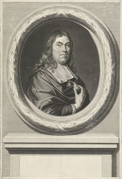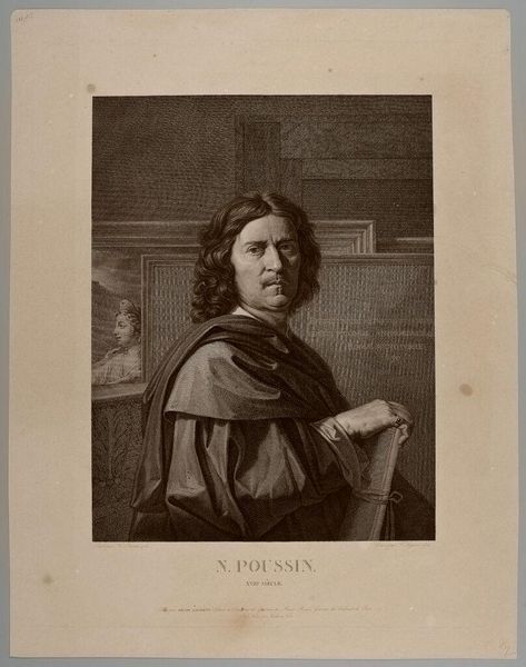 Editor: This is Amédée Félix Barthélemy Geille's portrait of Pierre Puget. What I find striking is how Geille captures Puget's gaze, almost like he's caught in a moment of deep thought. What do you make of that expression? Curator: It feels like a glimpse into the mind of a creative genius, doesn't it? Geille almost lets us eavesdrop on Puget's inner world. I’m thinking of Romanticism, the inner life, a world of feeling, do you see it that way? Editor: I do. It also makes me think about the tradition of portraying artists with this kind of intense, almost melancholic air. Curator: Exactly! I love that you noticed that. It's as if Geille is tapping into this well-worn trope of the artist as a brooding, solitary figure. A rebel, perhaps? Editor: Definitely seeing him with fresh eyes now. Thanks!