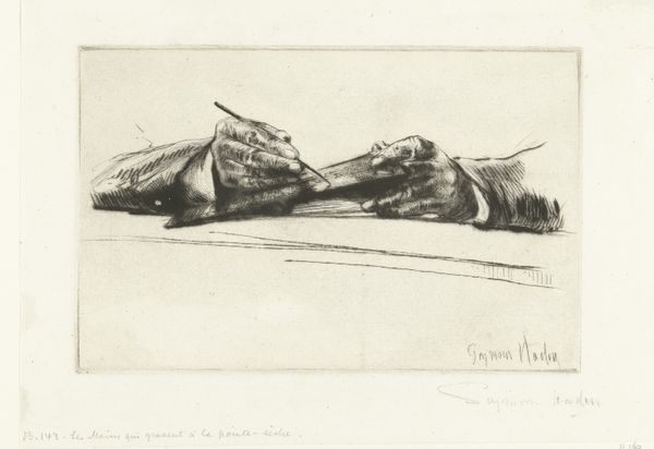 Curator: Joshua Cristall’s "Wickerwork Washbasket," a humble drawing from the early 19th century. The Art Institute of Chicago holds this little treasure. Editor: My goodness, it's so...understated! Like finding a forgotten song in a dusty attic. A quiet study of domestic life rendered in graphite and paper. What do you think, curator? Curator: Well, precisely! It is unassuming, isn’t it? I see it as an ode to the everyday. Think about the social context - the sheer labor involved in making and using that basket. Editor: Oh, I agree wholeheartedly! Wickerwork itself tells such a story of handcraft. Notice how Cristall captures the intricate weave—the light and shadow creating this surprisingly sturdy container out of humble natural materials. Curator: Absolutely. It elevates the mundane. A simple washbasket becomes worthy of artistic scrutiny. Editor: But, isn't there something also, about the almost imperceptible sadness there? It reminds me of childhood, of things left behind and the ephemerality of material possessions. Or is it the ghost of unwashed clothes and unending household chores that haunt the scene? Curator: Ah, the personal reflections come creeping out! That’s wonderful. Cristall’s loose and confident lines capture light with simple shadow. There's the mark of a confident draughtsman, more interested, I think, in capturing form and texture in real time. Editor: Hmmm… Maybe I’m being overly sentimental. But you're right - I feel Cristall really respected the craft behind its creation, recognizing, maybe even honoring, those labor-intensive processes that formed the everyday world, the often invisible acts that shape lives and art alike. Curator: So it moves you, despite its simple subject. Good! I find myself looking closer at it than I might've expected and I learn something new about art and about the life for which the basket was made. Editor: A lovely little thing, really, filled with subtle stories that you have helped me find.
