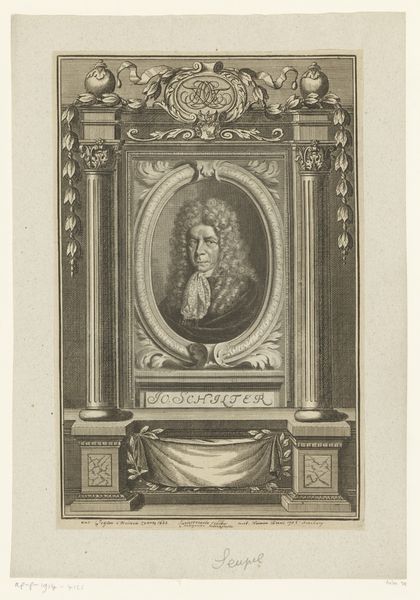 Editor: Here we have Johann Martin Bernigeroth's "Portret van Gottfried, abt van Göttweig," from 1739. It's a print, an engraving. It feels very official, like a record of someone important. I'm curious about the way he's framed, almost presented like a monument. What can you tell me about how this artwork functions in its historical context? Curator: Well, consider the subject: an abbot, a figure of significant religious and political power. Engraved portraits like these were crucial for disseminating images of authority in the 18th century. This wasn’t just art; it was a form of visual propaganda. How do you think the print medium itself influenced its reception? Editor: I suppose because it's a print, it can be reproduced and circulated widely. So, it makes sense that a figure who needs to be seen and respected would utilize this technique to proliferate his image. Curator: Exactly! Think about the institutions that commissioned and distributed these portraits: monasteries, political bodies, even wealthy families. This image served to reinforce their authority. How does the portrait style reinforce or subvert these ideas of authority and power? Editor: I see... the precise lines of the engraving and the formal pose add to this feeling of authority. There's not much room for individual interpretation or expressiveness; he’s presented as a figure of unwavering power and responsibility. Curator: And note how he is presented, almost three-dimensionally. It is no accident, especially with the latin dedication, this was a work for the educated classes. Do you think such an artwork like this could ever subvert an authoritative image? Editor: Maybe, if the public context shifted dramatically. A symbol of the old order would need a major change of power or even a revolution to drastically change the portrait’s function. It's all very thought-provoking. I appreciate learning about the interplay between art, power, and society in this specific portrait. Curator: And I enjoyed the dialogue and discovering how the context of the museum or collection could similarly imbue meaning for this image today.
