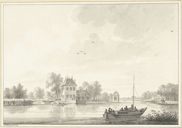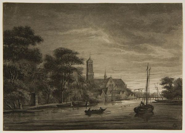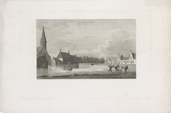 Editor: This is Fabio Berardi's "Venetian View," from the 18th century. It has such a calm, almost melancholic feel. What strikes you most about this print? Curator: It's like a memory, isn't it? Berardi captures Venice not as a sparkling tourist postcard, but as a place where people lived and worked. The figures seem caught between eras, the classical ruin and the everyday life. Did you notice the inscription in the lower part? Editor: I did! "Se col sudor si acquista è dolce il pane"—"Bread tastes sweet if earned with sweat." It speaks to the dignity of labor. Curator: Exactly! It is as if Berardi were reflecting on the beauty found in the ordinary. Editor: I never thought I would find so much poetry in just one view! Curator: Me neither. Makes you wonder what kind of stories those buildings could tell.