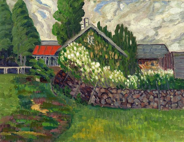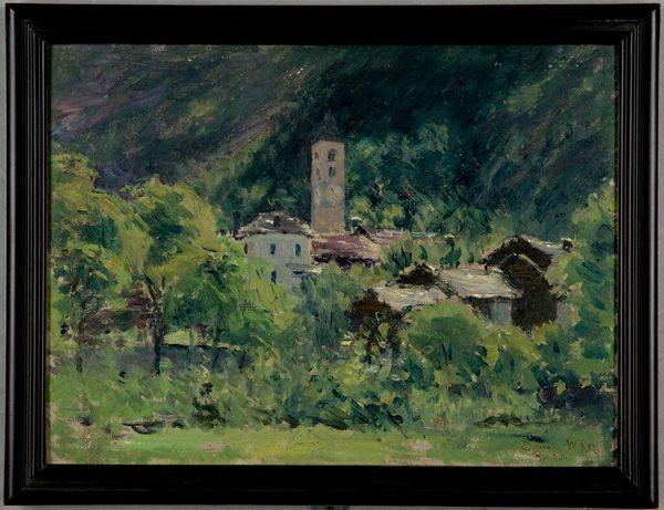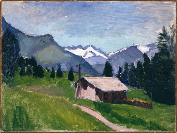 Editor: Here we have Denman Waldo Ross's "Landscape, Switzerland," a watercolor piece. I’m struck by the visible brushstrokes and the way the artist uses color to define form. What stands out to you? Curator: Considering the materiality of the work, note how Ross uses watercolor, a medium often associated with amateur or decorative arts, to depict a landscape. How does this choice challenge traditional hierarchies in art production? Editor: So, by using watercolor, he's questioning what's considered "high art"? Curator: Precisely! It prompts us to think about the social context in which certain materials and techniques are valued over others. We see the labour involved, the process of its making, and how these intersect with ideas of "fine art." Editor: That's fascinating, it makes me see the painting in a completely different light. Curator: Indeed, and it underlines how the means of production deeply inform our understanding and appreciation of art.