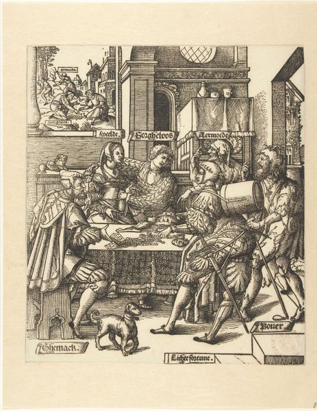 Léonard Gaultier created "The Parable of the Marriage Feast" as an engraving in France during a period of religious and social upheaval. This artwork depicts a biblical scene, but it also reflects the social hierarchies and power dynamics prevalent in 16th-century France. Notice how the king sits at the head of the table, elevated and surrounded by his court, while the common man is being bound and cast out. The visual codes here speak volumes about the social order, with the king embodying authority and the common man representing those deemed unworthy or disruptive. It serves as a potent commentary on the social structures of its time, reinforcing the power of the elite while marginalizing the lower classes. By examining historical documents, religious texts, and social commentaries from the period, we can gain a deeper understanding of its meaning within its original context.