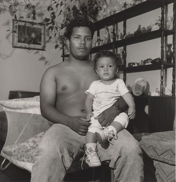 Editor: Okay, next up we have Milton Rogovin’s "Toreador (Lower West Side series)," a gelatin-silver print from 1985. It depicts a family, gathered outside what looks like their home. There’s a stoic quality to it, almost a gravity. What strikes you most about this photograph? Curator: It whispers stories of resilience, doesn’t it? Rogovin wasn't just capturing an image; he was capturing lives, entire neighborhoods facing the brunt of deindustrialization. I always wonder about the man wearing the cowboy hat… what was his dream, how did he picture his future when this photograph was taken? I look at the architectural forms surrounding them; these rigid geometries are so full of emotion! What do you notice about how Rogovin composes his shot? Editor: I see what you mean; there's something about the window and the brick behind them. And I guess the chain-link fence frames the composition as well, setting up layers between us and them, but that could also speak to barriers in general. Curator: Exactly! That fence might hold as much meaning as anything *within* the frame! You know, Rogovin often referred to his subjects as his “neighbors,” regardless of where he was photographing. I wonder what that says about the responsibility of the artist. Editor: That’s fascinating, viewing them as equals. So the images aren’t just documentary, they're an act of community? I’m looking at this picture very differently now. Curator: Aren't we all acts of community, in some ways? We're threads in each other's tapestries, shaping stories every single day... Editor: Thanks! Now, that’s definitely something I’ll carry with me.