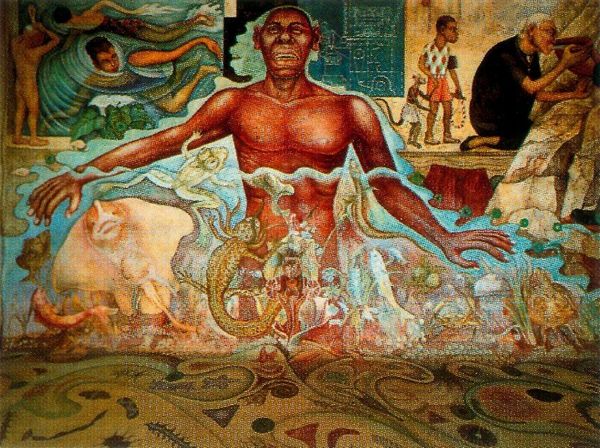 Botong Francisco made this epic mural, Filipino Struggles Through History, with paint on canvas, and the making of it feels so connected to the sweep of history itself. The earth tones and reds create a fiery backdrop, as if the paint itself is rising up. I am drawn to the layering of figures, the way they emerge from this roiling scene. There's a real sense of physicality, especially in the way the artist renders the bodies straining against the weight of their struggle. Look at the brushstrokes on the central figure's chest, the way the light catches his muscles. You can almost feel the tension. The spears in the painting point in all different directions and act almost as lines in an abstract drawing, each mark adding to a sense of urgency and unrest. It reminds me a little of José Clemente Orozco, another muralist who wasn't afraid to get messy and political. And just like Orozco, Francisco reminds us that art isn't just about pretty pictures, it's about wrestling with the big questions.