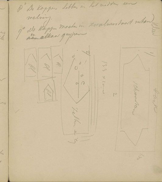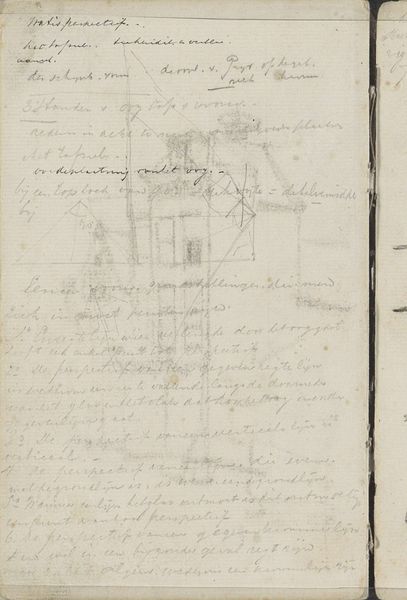 This sketch, "Plattegrond van een kamer" or "Floor plan of a room," was made by Johannes Bosboom. He used graphite on paper. Here, the composition appears almost like a deconstruction of architectural space, rendered in spare lines and notations. The floor plan, while appearing straightforward, is disrupted by the inclusion of fragmented pillar studies on the left and handwritten notes to the right. The pillars, truncated and measured, contrast with the more fluid representation of the room’s layout. Bosboom uses the language of architectural drawing, typically employed for precision, to suggest something more ambiguous. We see an interplay between objective measurement and subjective impression. The semiotic system at work here disassembles a traditional drawing by inviting us to question fixed meanings within the context of architectural representation. Bosboom’s drawing underscores the idea that art does not provide a single, stable interpretation but rather initiates a dynamic process of seeing and knowing.