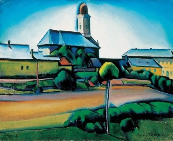 Kmetty János painted this scene of an ‘Artist Colony’ with oil on canvas, though when exactly, we don’t know! What strikes me is the process of seeing involved. Look at the grass. It’s not just green, but bands of different greens, and even yellows and blues, laid down in confident strokes. János isn't trying to trick you into thinking this is real, he's inviting you to enjoy the artifice. The shapes of the trees are rounded and plump, almost cartoonish, rendered with visible marks. These dark green marks create the shadows, yet they remain so clearly like strokes on a page. The artist isn’t trying to hide his working, rather he's declaring it! I think of someone like Lois Dodd, who similarly found ways of seeing the geometry in nature. Both artists seem to enjoy making paintings that invite us to see the world afresh through the joy of colour and mark-making. Ultimately, art is about seeing, and this piece opens up so many ways of doing just that.