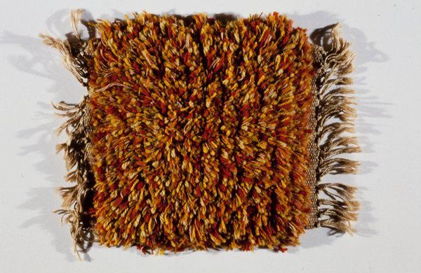 Editor: Here we have Otti Berger's "Rug Sample," a textile piece of unknown date. I'm really drawn to its rich, earthy tones and the way the texture seems to invite touch. What do you see in this piece? Curator: It's a quiet symphony of intention, isn't it? Berger, a Bauhaus weaver, explored the possibilities of material and color with scientific precision, almost like a painter mixing colors. Each shift in the pattern tells a story, I wonder what you imagine those stories to be? Editor: Maybe stories of home, comfort, and the beauty of everyday life? Curator: Precisely! Even in this sample, Berger elevates the everyday into something worthy of contemplation. Editor: It's fascinating how much depth a simple rug sample can hold! Curator: Indeed, it encourages one to consider the beauty and power of the practical.