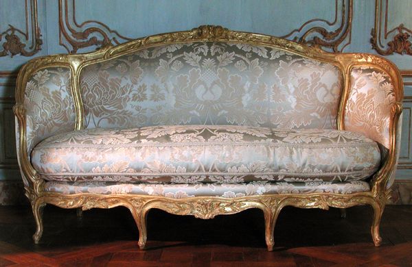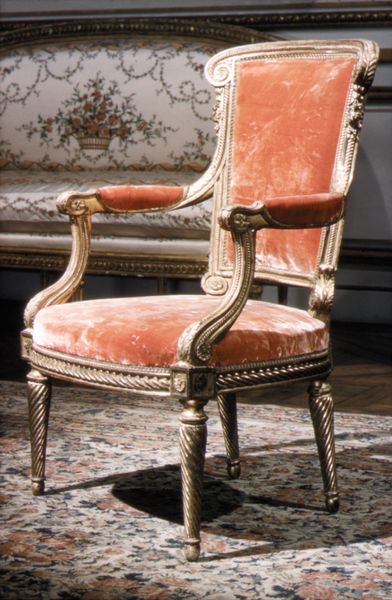 Curator: Oh my! Well, isn’t this just a frilly bit of gorgeousness. All it needs is someone wearing silk stockings and a powdered wig lounging upon it. Editor: Precisely! We’re looking at four of the original upholstery panels for a settee, crafted between 1754 and 1756 by the Beauvais Manufactory. Curator: Ah, Beauvais, purveyors of plushness and pastoral fantasies! Those panels... it's like a woven dream, isn't it? Teeming with flora, fauna, and what appear to be cherubic mischief-makers? Honestly, I want to sink into it. Editor: Rococo excess at its finest! Note the symbolic interplay: the idealized nature scenes evoke a pre-industrial idyll, reflecting a longing for a simpler, perhaps more innocent time. Of course, this ideal was only available for the upper crust to literally lounge upon. Curator: There’s definitely some pointed commentary about social escapism wrapped in silken thread! All those roses, I see it as a pre-revolution statement, all those blushing beauties that conceal hidden thorns. Do you think so? Editor: I think it does more than concealing hidden thorns! Roses can symbolize love, secrecy, even perfection depending on how you read their cultural symbolism. In this time, the wealthy and Royal classes tried to live up to those perceived ideas through this ideal representation. It makes you think about how perception changes through class. Curator: What do you think these panels whispers about the world of leisure and longing during the pre-revolution? It would make one believe everything was nothing but a pretty bird and rose. I'm now looking closer and I think I notice a theme with birds. It seems every panel has a bird. Do you know if that is of significance? Editor: Birds are interesting because they symbolize different meanings based on cultures and beliefs. When one thinks of Rococo artwork, it's usually never more than face value and pleasing the eye. Considering the fact there is some deeper meanings, these upholstery panels do more than what they lead on! Curator: Yes, it looks a great textile art in decorative art context! Overall, an invitation to rest—maybe not so peaceful at all, a kind of luxurious battleground of symbols and social yearnings woven into the fabric. Editor: Exactly!
