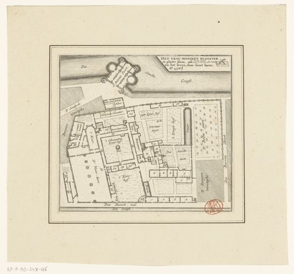 Editor: This is an intriguing architectural drawing from the Metropolitan Museum of Art’s collection, called "Plan of a Hotel and Garden," dating from 1680 to 1730, created by an anonymous artist using print and drawing media. It looks like a blueprint of sorts for a very elaborate garden and estate. How do you interpret this work? Curator: I see a physical manifestation of power and social hierarchy meticulously laid out on paper. This isn't just a garden; it’s a carefully constructed landscape designed to project status and control. The geometric precision and ordered nature, wouldn't you agree, reflects the desire to control nature itself. What statements do you think these curated landscapes made about the relationship between humanity and the natural world at the time? Editor: Well, it looks like they valued dominating it, shaping nature to human designs rather than coexisting with it! Curator: Precisely. Consider who had access to these spaces. Land ownership during that era, didn't it define privilege? These gardens served as stages for social performance, exclusive realms removed from the realities of labor that sustained them. Moreover, architectural renderings such as this represent not just a design, but also reflect an aesthetic rooted in colonialism, think of the forced labor necessary to implement them! How much of what is beautiful and sublime in Art is supported by structural inequity? Editor: That's something to consider. I never looked at landscape art with an eye on political agendas before, that gardens such as these weren’t just about aesthetics but also economics and exploitation. Thank you. Curator: Understanding context is key to enriching our understanding. Hopefully, that will also allow for creating an art history of the future which considers a wide variety of intersectional topics.