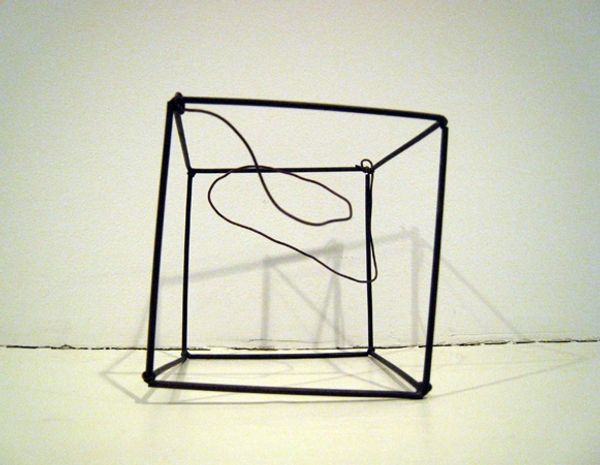 Hans Haacke made this *Condensation Cube* out of perspex, water and air. When I look at it, I’m thinking of a drawing, but with atmosphere instead of ink. The process is the point here, this is not a static object. The work invites us to consider the physical properties of its materials as well as the environmental conditions that activate its aesthetic potential. The condensation forms these tiny little droplets that run down the sides, making marks like the traces of a brush. The cube is so simple and minimal, it reminds me of Sol LeWitt's structures. But with Haacke, it’s not just about the geometric form, it’s about what happens inside the form. You can never see the same cube twice! It is beautiful in its ephemerality, isn’t it? This piece asks how we can embrace chance and change in our lives and in art.