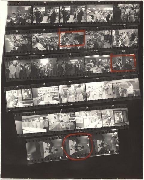 This is Robert Frank's "Guggenheim 707--Casper, Wyoming," a photographic contact sheet. Frank’s work is deeply intertwined with the social and political landscape of mid-20th century America. Born in Switzerland, Frank brought a critical outsider's eye to the U.S. He received a Guggenheim Fellowship in 1955 to travel across the country, documenting everyday life. This contact sheet provides a glimpse into Frank’s photographic process during that journey. Frank's images often captured the undercurrents of American society, revealing the divides of race and class. He critiques the idealized vision of the American Dream. The contact sheet shows Frank's own process of image selection. It reminds us that what we see in a finished photograph is the product of choices reflecting the artist’s own social and political perspective. To further understand Frank's work, consider exploring his published book, "The Americans," and research on the social conditions of the 1950s, including the Civil Rights Movement.