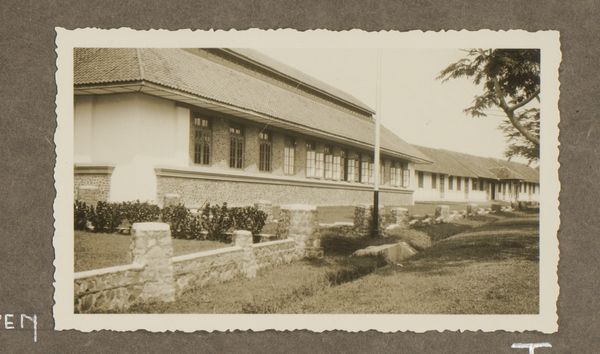 Editor: So, this is a photograph titled "Exterieur van het huis en de tuin van de inspecteur van de Deli Maatschappij te Bindjai Langkat op Sumatra," which translates to "Exterior of the house and garden of the inspector of the Deli Company in Bindjai Langkat, Sumatra." It's from around 1900-1920. The grand building almost fades into the soft landscape in this black and white image. What aspects of its cultural context or the way it was made strike you most? Curator: It is difficult to miss that this is more than a simple photo, it is an assertion of power. Here we see a company inspector's residence and garden during the colonial era of Sumatra. It invites consideration of who controlled the means of production here? How does this building demonstrate this access and control, visually and materially? Editor: It's a sharp contrast between the manufactured, orderly architecture, and the, what looks to me, more wild surroundings. It definitely speaks of dominance. Curator: Precisely. The photograph itself becomes part of this apparatus, a documentation, and almost a trophy, showcasing colonial achievement. We see not only the architecture, which is likely made from materials and resources extracted locally and by local labour, but the "garden" – a space that is controlled, and arranged to the standards of the colonizer, right? Can you see how photography serves here as a tool for asserting colonial authority? Editor: It's really clear. By capturing this manicured space, they were in essence capturing control itself. Everything here becomes about how materials were accessed and the labor involved in crafting this image of power. This makes me think of the labor involved with resource extraction... and the photo is a product of that as well. Thank you. Curator: Absolutely. Analyzing the work from this perspective offers deeper understanding of how it intersects with global power dynamics and social narratives, as the materials are arranged for maximum impact for whom?