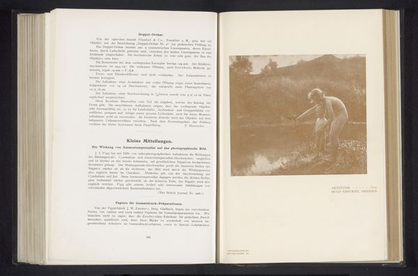 Editor: Here we have a photograph titled "Portret van een onbekende naakte vrouw," or "Portrait of an Unknown Nude Woman," created by Frank Eugene before 1901. The gelatin-silver print feels very intimate, almost voyeuristic in its soft focus. How do you interpret this work? Curator: The allure of this photograph lies primarily in its manipulation of form and light. Note how the artist subverts conventional portraiture, prioritizing tonal gradation over sharp definition. The sitter's form dissolves into the ambiguous space. Observe the texture. The photographic print is rendered through the softness and blurring of the composition that serves a crucial aesthetic function. Do you find the lack of a clear subject distracting or enhancing the work? Editor: I initially found it a bit unsettling. Now, focusing on the visual aspects, I see how the soft focus removes it from being a purely representational portrait. It allows you to appreciate the gradations of light and shadow without being bogged down in details. It is symbolic and intimate. Curator: Precisely. It encourages a reading beyond simple representation. The artist engages a philosophical inquiry into perception and the relationship between figure and ground through materiality. This approach transforms the artwork into a symbolist study rather than mere portraiture. In this manner, the essence of artistic inquiry is achieved. Editor: That makes me see the work in a totally new light. I had not fully grasped the concept of art in this photograph as purely artistic expression, especially by focusing on the materiality of light, blurring, and even tonal composition rather than symbolic form. Curator: Exactly. The materiality informs meaning. And it highlights how careful observation can reveal profound conceptual underpinnings within even the simplest compositions.