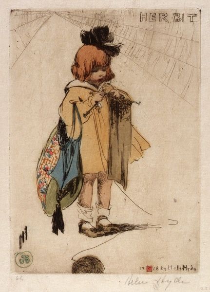 Curator: John George Brown's "Pegged Out" captures a young boy holding a tattered boot, seated amidst his cobbling tools. There's a whimsical, almost playful tone to the work. Editor: Immediately, the material reality hits you, doesn't it? The visible mending, the worn leather, speak volumes about labor and its daily presence. Curator: Yes, but consider the figure's pose: the hand to the chin, the contemplative gaze. It invites the viewer to question the boy's thoughts, moving beyond pure representation into the realm of emotional narrative. We see here a keen attention to formal balance. The way the artist employs analogous colors to evoke calmness contributes to an aura of introspection. Editor: I can appreciate the composition, but I see it differently. It highlights the cyclical nature of work and wear. These aren’t just colours; they are evidence of repeated use. The deliberate detail in depicting these tools transforms this from mere genre painting into a meditation on labor and consumption. Note the tools scattered about. Curator: Certainly, these details contribute to a larger narrative, though I resist reducing them to purely utilitarian symbols. Note how the backdrop almost dissolves, the details fade, bringing our attention solely toward this single individual's expression. This isn’t solely about documenting labor, but a study of an individual psyche as well. Editor: For me, it's how the artist engages with class and circumstance through the very texture of the paint. The worn soles, frayed edges are rendered with an attentiveness that transcends aesthetic appreciation and becomes a testament of physical work. These holes in his stockings— the signifiers of labour and poverty —become impossible to ignore Curator: Ultimately, the painting provides a stark example of 19th century realism. It exemplifies art's capacity not only to represent the visible world, but to reveal character and invoke our shared humanity through line, light, and careful structuring of forms. Editor: Perhaps it stands as a reminder to examine not just the image before us, but the hands that crafted and how the final work, from brushstrokes to worn soles, bears witness to life itself.