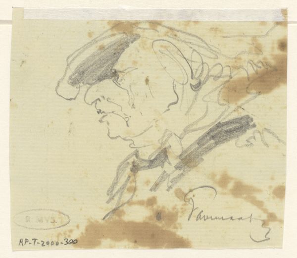 Johannes Tavenraat made this caricature of a man with a hat in the Netherlands, most likely in the mid-19th century. The caricature emerged as a popular form during this period, fueled by the growth of print media and public interest in social and political commentary. Tavenraat’s sketch, with its exaggerated features, speaks to the Dutch tradition of using art to critique social types. The man’s prominent nose and the way his hat is angled suggest a certain pretentiousness, inviting viewers to question the values and behaviors of the Dutch middle class. Understanding the full impact of this image requires us to look at the broader context of Dutch society and the art world in the 19th century. By researching Dutch newspapers, journals, and exhibition catalogs from the time, we can gain insight into how such images were received and what they might have meant to their original audience. The meaning of art is always contingent on its social and institutional context.