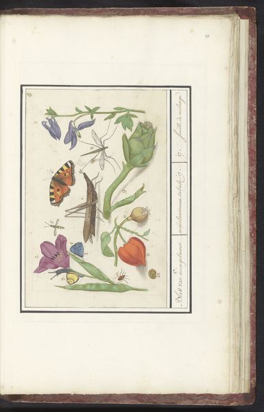 Elias Verhulst, an artist active at the turn of the 17th century, rendered this delicate watercolor of flora and fauna in the style of a natural history study. During this period, European society was undergoing a profound shift. Exploration and colonialism propelled encounters with new cultures and species. This led to a growing interest in cataloging and understanding the natural world, but also to the exploitation of both human and natural resources. Verhulst's ensemble gives us a glimpse into this moment. His rendering evokes the detailed observation and scientific inquiry, whilst reminding us of the social and political contexts in which such studies occurred. While seemingly objective, natural history illustrations were far from neutral, they mirrored the power dynamics of the time and the desire to categorize and control nature. This image invites us to consider the history of science and art as intertwined with the broader narrative of colonialism and its impact on our understanding of the world.