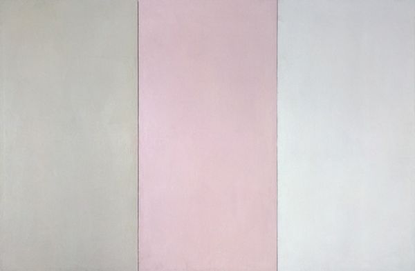 Curator: Standing before us is "Onda," a work from 1982 by Ettore Spalletti. Its minimalist composition immediately strikes you, doesn't it? Editor: It does. My initial impression is one of serenity. The soft, muted pinks and the gentle wave-like form create a very calming, almost meditative mood. Curator: Spalletti was deeply engaged in exploring form and color, and "Onda," primarily crafted with acrylic paint and ink, is a quintessential example. It exemplifies Color Field painting through subtle tonal variation, offering a tangible representation of the poetics of space. Consider how geometric form is made sensual through colour. Editor: That makes me think about accessibility in art institutions, as the colour field offers something immediate, but then invites further inspection, something tangible regardless of art-historical training. I find it particularly interesting when viewing artwork produced in the 1980's. So much was going on during this time. Can you contextualize Spalletti's "Onda" with historical events? Curator: Well, during the 1980's the Western art world saw postmodernism rise, challenging many of the formal concerns evident in the Color Field painters before him. "Onda" thus becomes interesting, as his formalist investigation quietly defies those art-world expectations. Editor: Right. It is also worthwhile to remember how this moment of postmodern turn affected identity, class and the global south. So, in that moment where art begins a turn to grapple with identities and representation more directly, we have Spalletti offering us quiet respite, meditation on pure form and tonal explorations, a soothing response amidst political turbulence? Curator: Precisely! It becomes almost revolutionary in its seeming simplicity and refusal to engage in the chaotic narratives so present at that time. Its power lies in providing space to feel, rather than to analyze. Editor: I like that, yes, a silent disruption. Looking at "Onda" now, I feel a deeper appreciation for its subtlety. It makes you contemplate the very essence of existence through art and what art can do for society in these turbulent times. Curator: It does urge one to reconsider how simplicity can speak volumes, even in complex, critical socio-political situations. Editor: It seems like the role of beauty should be given more consideration, not only in how we receive art, but as an art's potential for political agency as well.