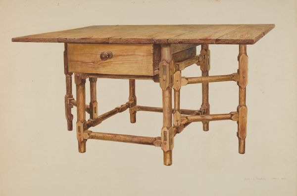 Amos C. Brinton rendered this Moravian Church bench with watercolor, capturing its sturdy form. This is a humble object, its rectilinear design reflecting the values of simplicity and functionality characteristic of the Moravian Church. The bench, however, is not merely a seat, but also a symbol of community. It echoes the benches found in various communal settings throughout history. Think of the symposia of ancient Greece or the communal tables of medieval monasteries. These are places where individuals gather to share ideas and experiences. The act of sitting together on a bench invites shared experience. It fosters a sense of collective identity and shared destiny. This simple object reminds us of our connection to others. This connection resonates with a powerful, primal need for belonging and solidarity. It is a need that transcends time and culture. The image of people seated together remains a potent symbol, an eternal return of shared humanity.