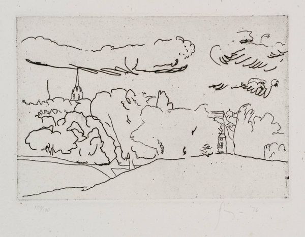 Editor: This is Barry Flanagan's "Urquheart," a sketch held in the Tate Collections. It feels so immediate, almost like a fleeting memory. What symbolic weight do you see in this landscape? Curator: The ruined castle evokes a sense of time and loss. Consider how ruins often function as symbols of past glory or failed ambition. Does the starkness of the landscape amplify a sense of isolation or resilience? Editor: I hadn't considered the resilience aspect; it's a good point. I was caught up in the isolation. Curator: Perhaps both are intertwined. Ruins remind us of history, the ebb and flow of power, and the enduring presence of the past within the present. Editor: This helps me see beyond the surface, to the deeper themes Flanagan is exploring. Thank you.