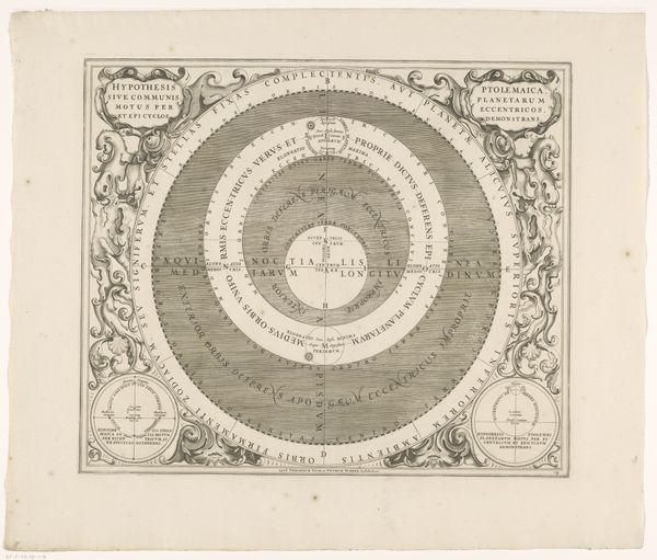 Curator: Here we have an engraving titled *Panorama van de Slag bij Waterloo, 1815,* created anonymously sometime between 1815 and 1816. What catches your eye about this piece? Editor: The circular composition is striking. It reminds me of a celestial map, yet it depicts a battle. How should we interpret that tension? Curator: Consider the context. Large-scale panoramas, particularly of battles, were a popular form of public entertainment and nationalistic expression in the 19th century. This print, essentially a miniature reproduction, made that experience accessible to a wider audience. How does that shift in accessibility change the role of this kind of war representation? Editor: That’s interesting! It was both propaganda and popular culture at the same time. The text filling the circle looks integral to the piece; is it adding historical context to the visual imagery? Curator: Exactly. The print is mediating the real and symbolic impact of the battle through printed media. Also, what's communicated when monumental battle scenes can now adorn everyday domestic spaces? Think about the role museums play today in shaping narratives, this print proposes that question, doesn’t it? Editor: Definitely something to ponder! It makes me wonder about who had access to even the reproduction and what their interpretation of it was versus our own. Thank you! Curator: Indeed. It highlights the complex relationship between art, media, and historical understanding, both then and now.
