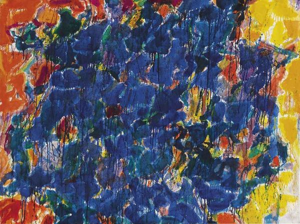Editor: This is Janos Mattis-Teutsch's "Blue and Red Landscape," created in 1918 using pastels. I'm really struck by how he manages to evoke a landscape, even though it’s so abstract and relies so heavily on color. How do you interpret this work, especially considering the historical context? Curator: It’s essential to view this piece through the lens of its time. 1918 was a pivotal year, the end of World War I. Artists like Mattis-Teutsch were grappling with profound social upheaval and the trauma of war. Does the swirling composition and high-key color palette hint at the instability of that period? Consider expressionism, what role it played in depicting inner emotional landscapes during such periods of conflict and change. Editor: That makes sense. The intense colors and swirling forms could definitely represent inner turmoil. It's not a peaceful landscape, more like an emotional one. I wonder why he chose these specific colors—the vibrant blues, reds, and yellows? Curator: Color is rarely arbitrary. Expressionists often used color to symbolize emotions and psychological states. What emotions do these colors evoke in *you*, and what societal connotations might they have held at the time, especially in light of the political climate and anxieties about nationalism? Remember too that expressionism and abstraction provided an escape from representational reality – a way to critique and question dominant ideologies indirectly. Editor: I see. So, rather than a literal landscape, it's a representation of the emotional landscape of a specific time and place. That shifts my understanding significantly. Curator: Precisely. Understanding the socio-political environment reframes how we look at even the most abstract forms. It invites us to consider art as a form of cultural commentary. Editor: I learned how deeply historical and social context are embedded in what I thought was 'pure' abstraction. Thank you for this different reading. Curator: And I'm reminded of how vital personal interpretation is, even when grounded in historical fact. The conversation between art and viewer is always dynamic, always evolving.