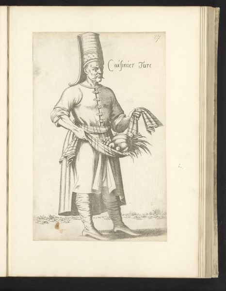 Léon Davent’s etching, "Vrouw met gevogelte en een mand eieren uit Karaman," or "Woman with poultry and a basket of eggs from Karaman," made sometime between 1540 and 1556, offers a glimpse into the complexities of cultural representation during the European Renaissance. The print depicts a woman from Karaman, a region in present-day Turkey, carrying poultry and eggs. Her distinctive headwear marks her as 'other' and exotic for a European audience. During this period, images of foreign lands and peoples were popular, often blending curiosity with the projection of European societal values. This depiction raises questions about the gaze through which non-European cultures were viewed and interpreted. How much was accurate representation, and how much was filtered through the lens of European expectations and biases? The woman’s gaze is averted; perhaps embodying an alternative, resistant narrative to European expectations. Consider how this image reflects the power dynamics inherent in cross-cultural encounters and the challenges of representing unfamiliar cultures.