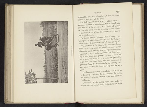 This image of a man riding a galloping horse is a photograph, likely produced in the late 19th or early 20th century. The photographic process was then becoming increasingly industrialized. Looking closely, you can see the material of the photographic print influences its appearance. The shades of grey, the texture of the paper, and the limited tonal range all give it a distinct character. The image would have been made through a labor-intensive process, involving the careful manipulation of chemicals and light. This contrasts sharply with the ease of digital photography today. The image's social significance lies in its depiction of leisure. It shows a privileged individual enjoying a recreational activity, made possible by both wealth and the labor of others who cared for the horse and maintained the facilities. As photography became more accessible, it also allowed for a wider range of people to document their lives, challenging traditional distinctions between art and everyday experience.