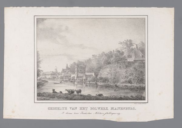 Jobst Riegel created this artwork called "Gezicht op kasteel Petersberg," a landscape, using a printmaking process. The composition strikes a balance between the natural world and the built environment. Notice how the artist’s use of light and shadow creates depth and volume. The structure is dominated by the imposing castle, which Riegel portrays with geometric precision. The interplay between the rigid architecture and the organic forms of the landscape creates a visual tension, a kind of dialogue between culture and nature. This tension invites us to consider how built structures are placed within, and in contrast to, natural settings. Consider the semiotic implications. The castle, as a sign, embodies power, history, and civilization. Meanwhile, the natural elements—water, trees, and mountains—represent the untamed and enduring aspects of the world. The artist challenges us to think about the relationships between these symbols and the cultural values they represent. This artwork invites contemplation on how we perceive and interact with the world around us.