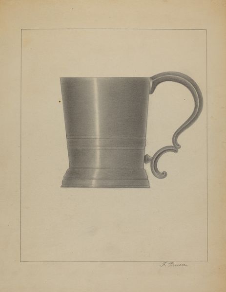 Vincent Carano's 'Silver Mug' is a drawing, and what strikes me is the way it's caught somewhere between observation and invention. It's like Carano is thinking through the mug, not just depicting it. The color palette is, well, silver, with delicate graphite lines describing the form. There's an under-drawing of a smaller version too, complete with precise measurements, which gives this piece a technical feel, but in a strange way. I mean, this isn't just cold rendering; it's got a warmth in its attention to the material. Look at how the light seems to sit on the surface. And the way those horizontal lines ripple and curve… It reminds me a little of Giorgio Morandi, but maybe with a bit of Roy Lichtenstein's comic book feel, even though this is much earlier. It's a quiet piece, full of possibility and reminds us that art is an ongoing conversation.