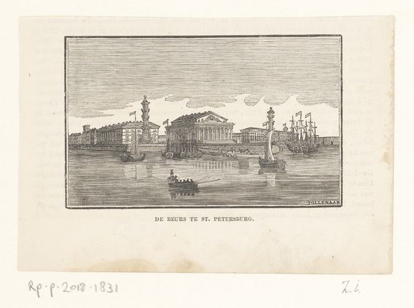 Curator: We’re looking at "View of the Alte Brücke in Frankfurt am Main," an etching by Carel Nicolaas Storm van 's-Gravesande, made around 1872. It’s currently housed in the Rijksmuseum. Editor: There’s a certain melancholy about this print. It feels muted, grey... almost dreamlike. I'm drawn to the river. What story does the etching process reveal? Curator: The print itself certainly invites reflection, and etching, of course, allows for very fine lines and detailed work. If we look closely at the architectural forms—the bridge arches and the buildings that line the riverfront—we see how he uses line and shadow to emphasize the city’s solidity, almost permanence. Editor: True, there’s that tension. But what about the figures in boats, or pulling carts? It seems that labor dominates the foreground. The very human scale emphasizes how this civic "permanence" is actively built and maintained. Where do those forms circulate, and who has access to that movement? Curator: You bring up an excellent point. The bridge has obviously stood as a significant link across the Main River for centuries, representing trade and communication. But the artist positions the figures centrally; their livelihoods clearly depend on this conduit. And that river—a flowing, changeable thing, carries both literal weight and its symbolic connections, time and travel, movement and transition. Editor: Indeed, the materiality here makes a strong point. As a printed work, what impact did its proliferation and reproducibility have? These weren't images for the elites, right? Curator: Etchings like this made cityscapes accessible to a wider audience beyond the traditional painting patrons. These affordable images shaped public perceptions of cities, and cultural pride through a new type of landscape tradition. The cityscape carries within it a portrait of society itself. Editor: Thinking about this artwork, it serves as a poignant reminder that all grand structures, cultural icons even, exist only through material support, social needs, and the hands of those who labor in its shadows. Curator: And the capacity to capture it, and share it with others.
