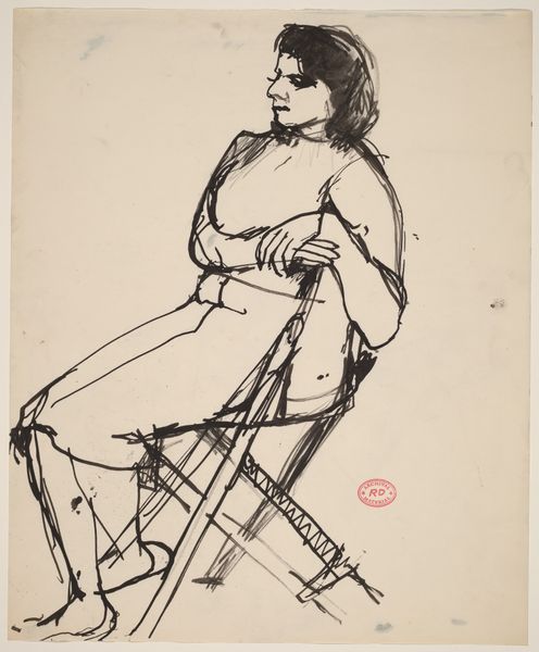 Edward Hopper made this "Study of a Seated Woman" with pen and ink on paper. It seems like a simple process, but it's deceptive. The starkness of black ink on paper requires immense confidence. Each line is laid bare, unforgiving. Look closely at the density of hatching creating shadow, and the thin, quick strokes defining form. This isn't just drawing, it's about conveying the weight of the woman's form, the texture of her dress, with minimal means. The choice of pen and ink – humble, accessible materials – connects Hopper to a long lineage of illustrators and cartoonists. The quick, decisive strokes speak to the urgency of capturing a fleeting moment, a study rather than a polished portrait. In its very process, the drawing embodies the tension between observation and interpretation, challenging any easy distinction between craft and fine art.