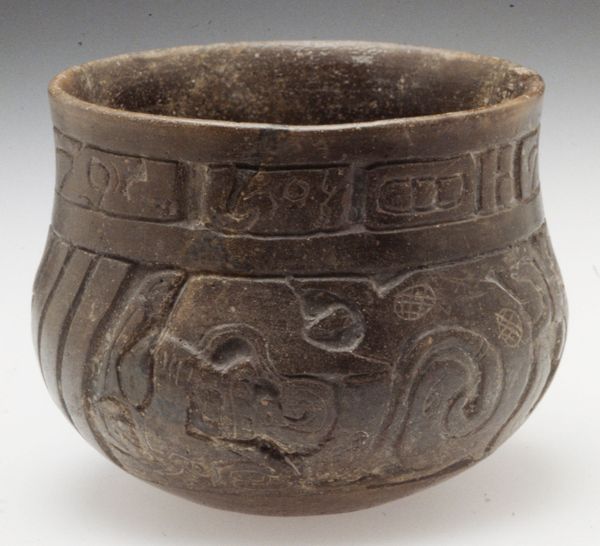 Editor: Here we have a wooden carving called "Bowl" by Olowe of Ise. It’s intricately sculpted, and the geometric patterns give it such a striking and formal presence. What do you see in this piece beyond just the aesthetics? Curator: Well, viewing this through a historical lens, the first thing that grabs me is how Olowe’s work disrupts traditional power dynamics within Yoruba art. Consider how this bowl, seemingly a utilitarian object, becomes elevated through its detailed carvings and its implied connection to elite patronage. Do you notice the visual storytelling happening here? Editor: You mean the carved patterns? I guess I hadn't really thought about them as narratives. I was mostly taken by the bowl’s physical form. Curator: Exactly. The patterns likely encode social and religious narratives specific to the Yoruba culture. Art objects like these often reinforced social hierarchies but also offered a means of subtly commenting on them. This bowl prompts us to think about how art served as both a tool for social cohesion and, potentially, subtle negotiation. Who do you think might have commissioned a piece like this? Editor: I would assume someone fairly wealthy. If it's hand carved out of wood, it probably took someone a good amount of time to make! Curator: Indeed. And placing this in a contemporary museum setting, what statements does the bowl make when extracted from its original location? Does its meaning change, or remain static? Editor: Wow, I didn’t realize one piece could have so much going on. It makes me see these objects in a whole new light, understanding their active role in culture and power. Curator: And understanding how museums shape our engagement with art as a reflection of ourselves and human experience, isn’t it?