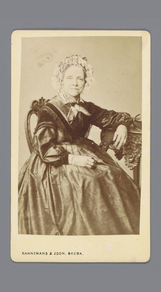 This is Johan Marinus Schalekamp’s photographic reproduction of Frans Hals’ painting of Feyntje van Steenkiste, made sometime in the late 19th century. Looking at this image, I am struck by the ways that light and shadow are used to create form and depth. There's a real sense of texture in the way the fabric drapes and folds, and the way the light catches on the ruff around her neck. Thinking about this photograph as a copy, I wonder how Schalekamp was thinking about the translation of paint to light? The subtle gradations of tone, from the soft, almost luminous highlights to the deep, velvety shadows, are really interesting. Especially when you consider this as a picture *of* a picture, there is something so compelling about how surface and form are handled. It reminds me of the work of someone like Sherrie Levine, who re-photographed famous images to ask questions about originality and authorship. This photograph, like Levine’s photographs, seems to say that art is always in conversation with itself, always building on what came before.