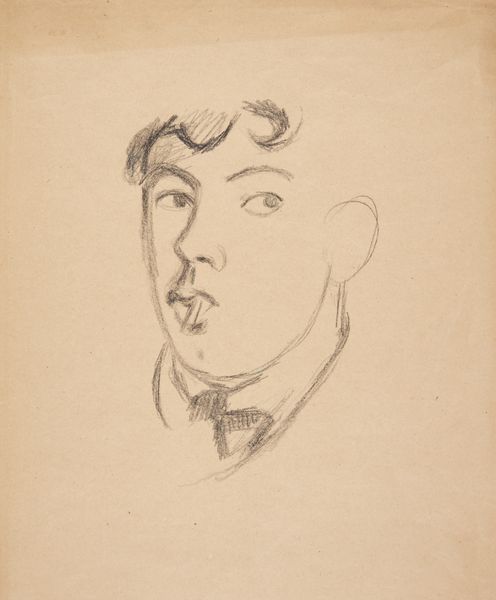 Curator: Breitner’s “Buste van een man met hoofddeksel,” or “Bust of a Man with Head Covering,” rendered in pencil between 1883 and 1885, immediately strikes me with its somber mood. What's your initial reaction? Editor: A distinct aura of melancholic resolve, a pensive intensity—particularly visible within his downward cast. The soft yet angular lines speak of the artist's skill. This really shows what impressionism means through pencil lines, and a bit of realism to render the expression so distinctively! Curator: Absolutely. Breitner, active in a period of significant social change, captured figures often marginalized or overlooked by mainstream society. I wonder if that affects the sitter in any way. Is the attire chosen purposefully? Are there political elements at play here? Editor: The cap suggests a working-class identity, certainly. It gives me laborer/serviceman vibes! Caps during that period were practical garments; thus it speaks volumes about him being common folk. Furthermore, his almost rigid, tight suit emphasizes social conformity versus his facial expression. What does the cap bring you in terms of iconographical symbolism? Curator: For me, the head covering speaks to ideas of anonymity, but also perhaps, the burdens placed upon working men and other members of Dutch society— the cap is almost a visual burden, not only masking identity but weighing down the head. Are we supposed to understand it is as some symbolic social signifier? Editor: An interesting interpretation, I do love the symbolism it embodies from your socio-political view! Speaking aesthetically, the artist is also intentionally contrasting light and shadow. Look at how he builds a deeper contrast between dark neck-area with a single lighting on the left face. The pencil becomes a tool for capturing depth! Curator: I concur! Now seeing the light playing out like that reminds me of how we project emotions of melancholy to the male working class that may or may not be there—maybe our vision is so tainted through lens and experience it may or may not accurately portray the state, maybe that contrast between light and darkness in a sense. I am always grateful and cautious when art challenges the social-political context! Editor: And to conclude, the rough sketches combined with a clear expression opens a dialogue beyond period definition, encouraging conversation between artwork and society, yesterday and today!