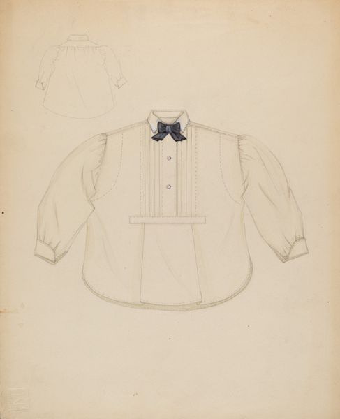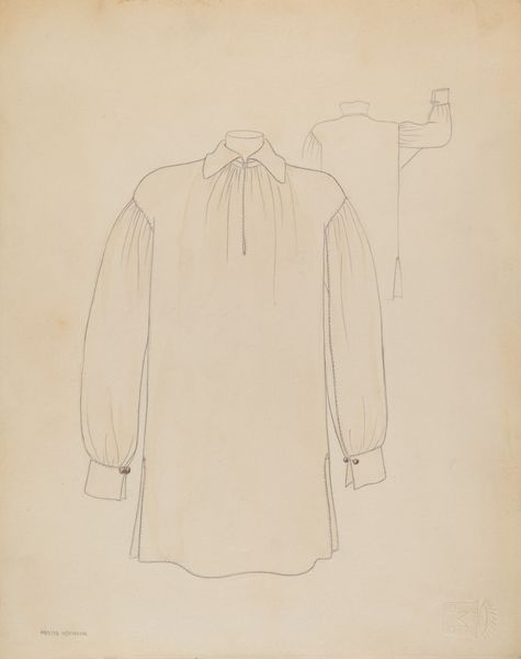 Ingrid Selmer-Larsen made this study of a Shaker Man's Coat, likely with watercolor on paper. Selmer-Larsen seems interested in the interplay of surface and structure that defines the garment. The smooth, dense wool gives the coat its form, while the tailoring shapes the cloth to the body. It's easy to imagine the labor involved: shearing sheep, spinning yarn, weaving fabric, cutting, and sewing. Each step relies on practiced skill. The Shakers, known for their commitment to simplicity and functionality, believed in making things well, which was a form of worshipping God. They valued utility and durability above all else. Garments like this coat reflect those values in every stitch. Selmer-Larsen clearly admired those qualities, studying the object with sensitivity. This artwork invites us to consider the artistry inherent in everyday objects, challenging us to rethink the boundaries between craft and fine art.