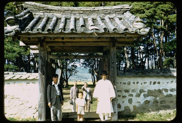 Curator: At first glance, it evokes a sense of serene solemnity, doesn't it? Almost as if time has stood still within these stone walls. Editor: We're looking at "Bukkuksa," a 1952 photograph by David Ketel, housed here at the Rijksmuseum. It captures a section of the famed Bulguksa Temple, a Korean Buddhist temple complex. Curator: The architecture speaks of permanence. That layered roofing and the meticulously stacked stones communicate durability—symbols of faith enduring. It projects the collective hope of an era, wouldn't you say? Editor: I think we also have to situate this image within the historical context. The Korean War was raging around this time. For Ketel to focus on the enduring beauty of Bulguksa…it reads to me as a powerful statement of resistance against erasure. A conscious centering of cultural memory. Curator: Absolutely. The composition itself—the way the photographer utilizes light and shadow—emphasizes this continuity. Notice how the structure emerges from shadow, gradually illuminated. Editor: And I am wondering about Ketel himself and his own potential biases when encountering this space as an outsider looking in. Photography as a medium is not a completely objective means of documentation. Curator: Indeed, photography freezes a moment. But it is a subjective observation of time. The architectural elements are full of symbolic significance. The elevated platforms and stairs, for instance, may represent the path to enlightenment. These stone walls speak about more than just architectural construction. Editor: Perhaps the temple served as a social nexus and locus point of collective gathering through political turmoil in the 1950s. Ketel's perspective captures not just stones and mortar, but also silent resilience. Curator: Photography’s beauty here lies in its deceptive simplicity, then. We see an image reflecting our own humanity. The photographer, Ketel, has become a witness—preserving a specific space that will long continue to outlive him. Editor: And hopefully, dialogues like this, examining that space, will give that moment lasting significance in the broader discussion about history.