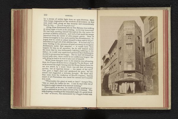 Curator: Before us, we have a fascinating print. It’s cataloged as "Fotoreproductie van een tekening, voorstellende een exterieur van een woonhuis aan de Rue Damiette 29 te Rouen," placing its creation sometime before 1895, author still unknown. A mouthful, isn’t it? Editor: Wow, a tumbledown tower of timber and glass! It looks like something dreamed up by a tipsy architect. It makes me feel as if it will topple over at any moment! Curator: You are drawn to the seemingly precarious architecture. I find myself reflecting on the printmaking process itself. Consider the labor and resources it would take to render an image of this detail, and the implications of that replication on a mass scale. Editor: It definitely embodies realism with its intricate rendering of the building's aged facade but realism shot through with a touch of dream logic, I would say. Look at the texture— the weathered wood, those panes of glass catching a distant light. Do you think the aged quality suggests some intentional romanticizing of old buildings in print? Curator: Very insightful, yes! The fact that this work documents architecture using photography reproduced with printing techniques demonstrates that tension between authenticity, mass reproduction, and artistic interpretation of older infrastructure. The typefaces themselves also present that contrast: the gothic, stylized text setting off the photographic precision of the depicted house. Editor: It speaks to how we try to preserve moments, freeze time and experience, knowing all along that change and decay are the truest laws. The dedication, the obsession! It makes me think of someone lovingly sketching the face of a loved one, tracing every line to keep the memory alive. Curator: That poetic sentiment is very appealing, connecting craft to memory in our built environment. Ultimately this simple photographic reproduction becomes charged with its own form of handmade value. Editor: So while this artwork gives new life to decaying timbered structures, the print too offers new value to this building in its original cultural context. Thanks for revealing so many layers. Curator: The intersection of architecture and memory presented here encourages me to reconsider how we assign new forms of social and economic value. Always happy to ponder those possibilities together.