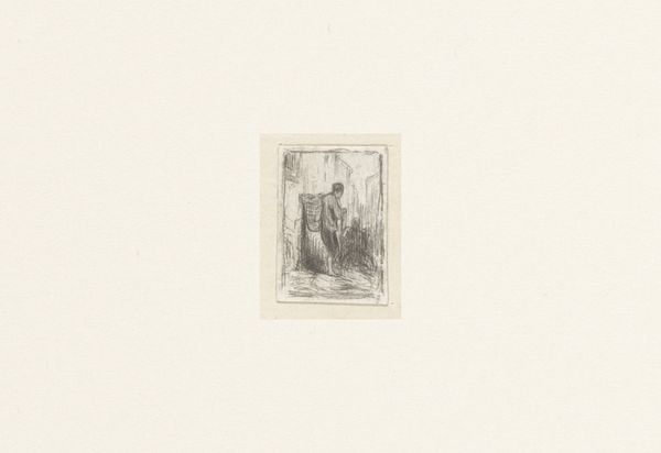 Curator: Here we have Ernest Meissonier's "Lopende jongen naar links, een fles in de rechterarm, een brood (?) onder de linker," which translates to "Boy walking to the left, a bottle in his right arm, a bread (?) under the left", made sometime between 1825 and 1891. The piece is executed in graphite. What's your first take? Editor: Sparse. The composition feels really minimal, almost ghostly. The figure emerges from a nebulous background—very understated but strangely captivating in its simplicity. Curator: I agree, the spare rendering and the indeterminacy of his possessions allow for an exploration of labour, and perhaps more broadly the daily realities of the working class, in nineteenth-century France. I’m immediately drawn to consider the social stratification of that time. What did it mean for a boy to carry such burdens, both literally and metaphorically? Editor: Well, focusing on the visual, look at how Meissonier uses subtle shading to suggest movement. The slight lean of his body, the soft blurring around his legs… it’s all about conveying the fleeting moment, not some grand narrative. There is a real attention to form, line, the modulation of light, and texture which are intrinsic to the reading of this piece. Curator: Absolutely, and if we extend the discussion of movement to the sphere of identity, this prompts me to reflect on questions such as “Where is he going?" and "What social strata does he belong to?” Given the potential scarcity suggested by the load he bears, how do we understand his socio-economic circumstances, and how does his situation influence the reading of the piece within broader conversations surrounding inequity? Editor: I suppose if we stick to Meissonier’s technique, it’s evident he’s deliberately avoiding detail to leave the boy slightly anonymous. Maybe it encourages a universal reading—the timelessness of youthful labor and endeavour. Curator: I can appreciate the openness you find there, and the space for personal introspection, though for me it highlights the systematic and often brutal reality faced by marginalized communities in 19th century Europe, who remained consistently disenfranchised, with very little means of bettering their lot. Editor: Fascinating how our readings can diverge so radically! For me, it's the artist’s handling of line and light. But I recognise that to other viewers, that is clearly just one element in an interpretation. Curator: And for me, the intrinsic visual language has to lead somewhere, so why not use it to shine a little light into the lives of these historical individuals.