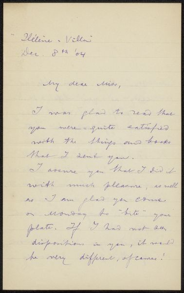 This letter to Elsie Maud Cownie was written in pen and ink by the Dutch artist Philip Zilcken, likely in the 1880s. It invites us to consider the social world of the artist. While this is an informal correspondence, it's an example of the social networks in which artists like Zilcken operated. It is a record of the artist’s interaction with a member of his social circle. Note that Zilcken refers to having "no pupils at all on Tuesday’s," indicating that he likely supplemented his income by teaching. The letter tells us about his professional life and perhaps the gender dynamics of the late 19th century art world, where women artists were often excluded from the formal institutions of art. Personal documents like this are invaluable for art historians. They help us reconstruct the daily lives and social contexts that shaped artistic production.