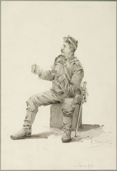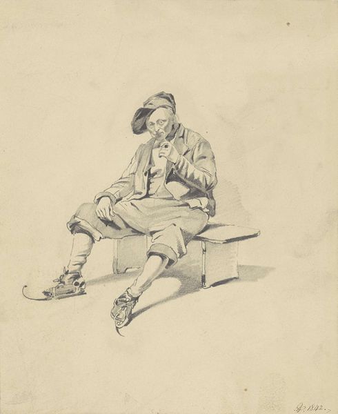George Caleb Bingham created this graphite drawing as a study for his painting “The Jolly Flatboatmen,” capturing a scene from 19th-century American life. The drawing’s monochrome medium emphasizes form and light, directing our focus to the posture and attire of the musician. It is a quick study, but note how Bingham nevertheless pays attention to the texture of the man's clothes, and the staved construction of the barrel he sits upon. He captures the fiddler's absorbed concentration, head tilted towards his instrument. Consider the artistry not only in Bingham's hand, but also in that of the craftsman who made the fiddle, and the cooper who made the barrel. These trades were essential to the economy of the Missouri River, a conduit for commerce and culture. The drawing provides insight into the leisure and labor of those who lived and worked along its shores. It's a reminder that what we now call fine art is always enmeshed in the material realities of its time.