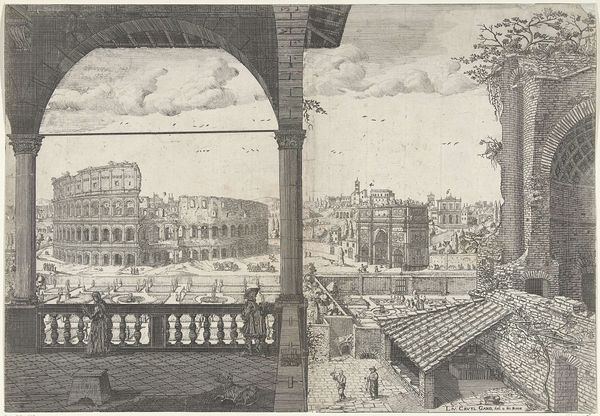 This is an etching by Johannes or Lucas van Doetechum, portraying a palace with a courtyard and a garden featuring a fountain on the right. The dominant visual experience is defined by its structured composition, with its formal organization articulating a sense of space and perspective. The buildings and gardens are rendered with meticulous detail, emphasizing geometric forms and orderly arrangements. The lines create a sense of depth, inviting the viewer to explore the architectural elements and spatial relationships. The stark contrast between light and shadow adds dimension and emphasizes the structural forms. This meticulousness reflects a broader interest in order and control. In the context of the period, such depictions of architecture often served as symbols of power, reflecting the structured societal norms and aspirations of the time. The composition serves as a visual code, conveying ideas about authority and social order. The etching invites ongoing interpretation and reconsideration, offering new perspectives on the structures of art and society.