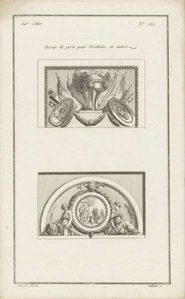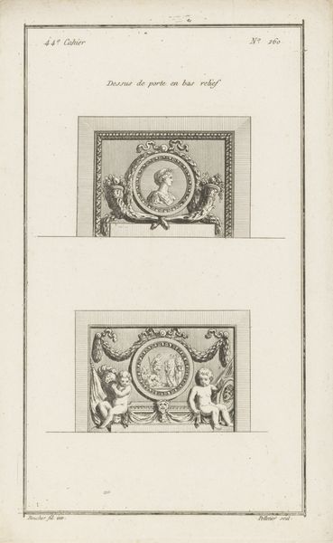 Editor: So, this is "Putti en rookvat" by Jean Pelletier, made between 1772 and 1779. It's an engraving, so a print, featuring these incredibly detailed, almost miniature scenes. It's very decorative, almost like a design for a room. How do you interpret this work? Curator: Well, the very decorative nature you observe hints at its original purpose and the society it reflects. This engraving, produced in the late 18th century, wasn't simply "art" in the modern sense. Consider the political and social function of the decorative arts. Doesn’t this style speak to you of power structures and conspicuous consumption? Editor: I see what you mean. It's not just pretty; it's communicating wealth and status. Like, look at those little cherubs holding garlands, they are so cute but feel more like they’re there to reinforce societal ideals. Curator: Exactly! And let's think critically about these cherubs themselves. Are they truly innocent, or do they serve to naturalize certain values, obscuring underlying power dynamics? The putti evoke a sense of classicism but are used to endorse the decorative, projecting it in official environments and palaces as status elevation symbols. How can we disentangle this association in modern times, when political power must serve the needs of a collective rather than elite interests? Editor: So it's more than just design. It reflects on 18th-century ideas about wealth, beauty, and who gets to enjoy them. It makes me think of who this engraving was intended for, who it excludes, and whose values it upheld. Curator: Precisely! The material tells us who owned and commissioned such designs at a specific time. A closer look uncovers questions regarding accessibility and elitism surrounding aesthetics. Art rarely exists in a vacuum, don't you think? Editor: It's fascinating how this seemingly innocent print can reveal so much about social and power structures! Thanks for shedding some light on the context of its production and historical interpretations! Curator: Likewise. Now we may understand a bit better that aesthetics never serves only aesthetics but responds to precise economical and political agendas.